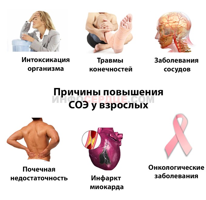 У взрослых уровень СОЭ может повышаться по следующим причинам: