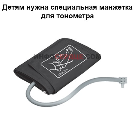 Во-первых, манжета тонометра для взрослых значительно больше, чем требуется для маленькой руки ребенка. Использование такой манжеты может привести к неверным результатам.