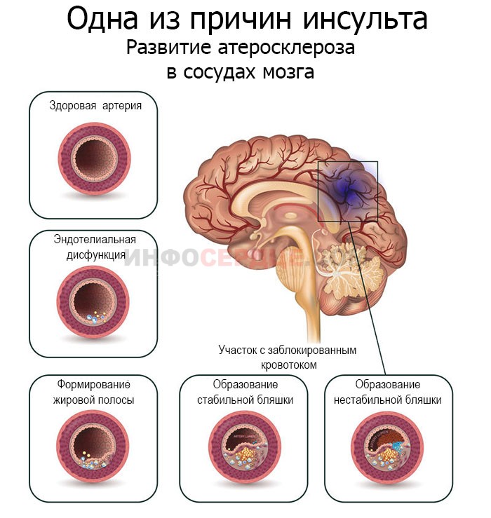 Обширный инсульт головного мозга может возникнуть по следующим причинам:
